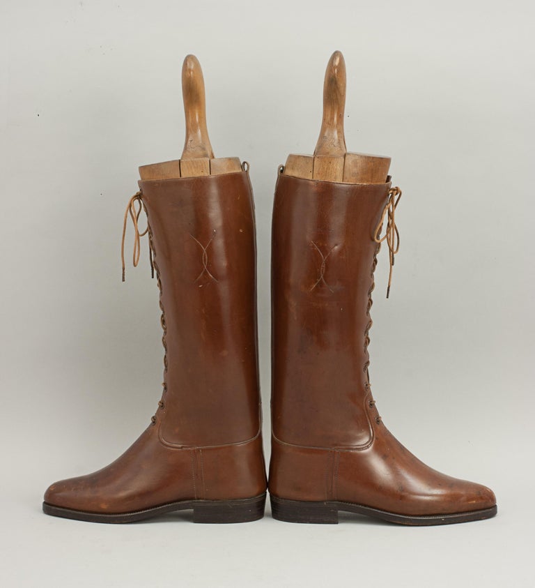 Vintage Pair of Brown Leather Ladies Lace Up Riding Boots …