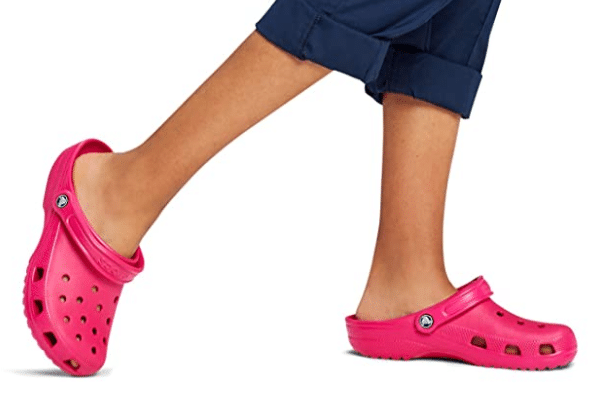Love these crocs!! Family planned a vacation to Disney and we heard that to avoid blisters we should purchase a pair of crocs. Needless to say, they saved our vacation. I wore nothing but the cros while we were there. I didn’t want to take the chance of getting blisters walking 25,000 steps a day for 10 days. They are quick and easy to dry after getting wet, can be worn with or without short socks, are very comfortable to walk in, cushioned and arch support. Toe width has enough room for comfortable spread with no rubbing on sides or top of toes. I wouldn’t recommend any other shoe for Disney or for sore tired feet. Just love them!